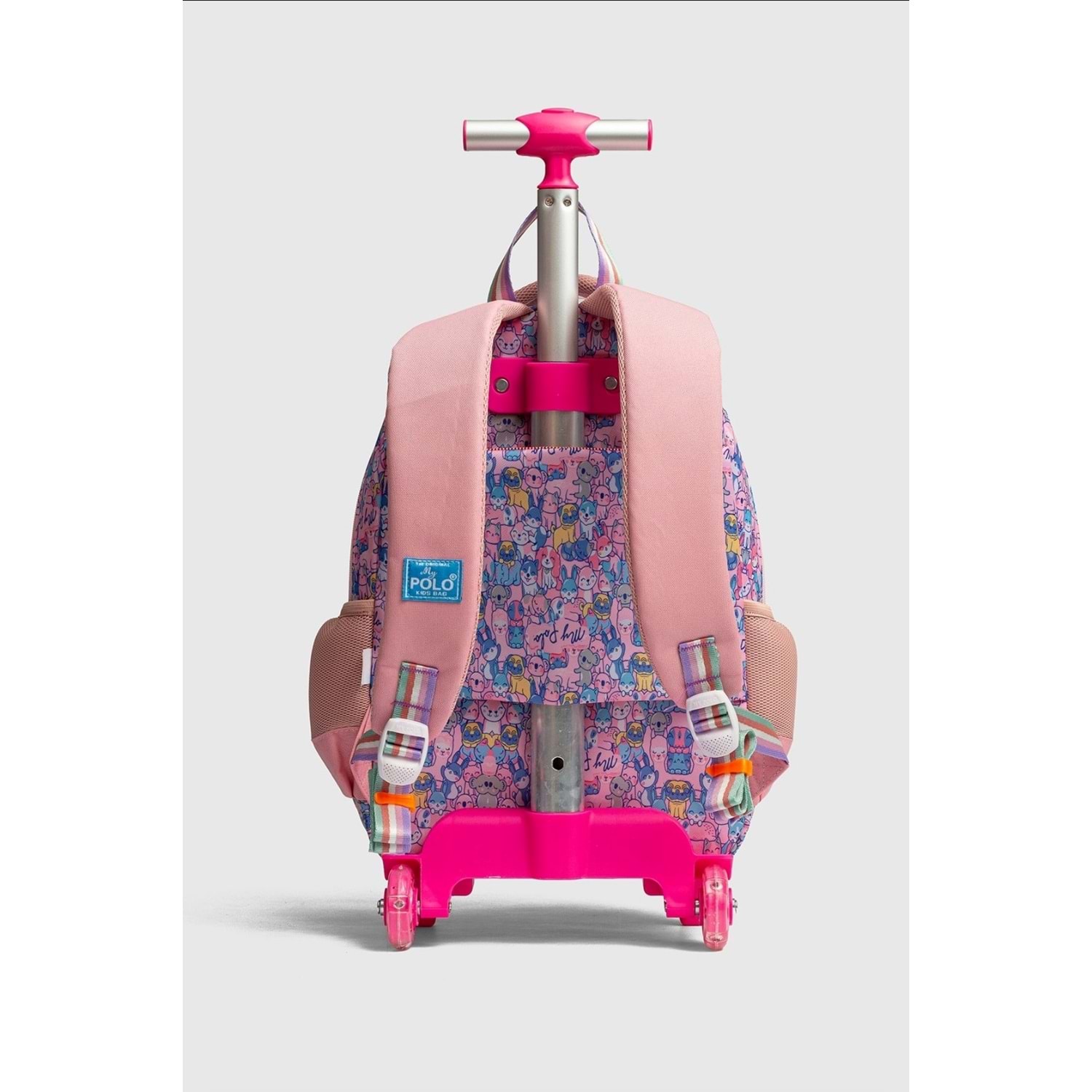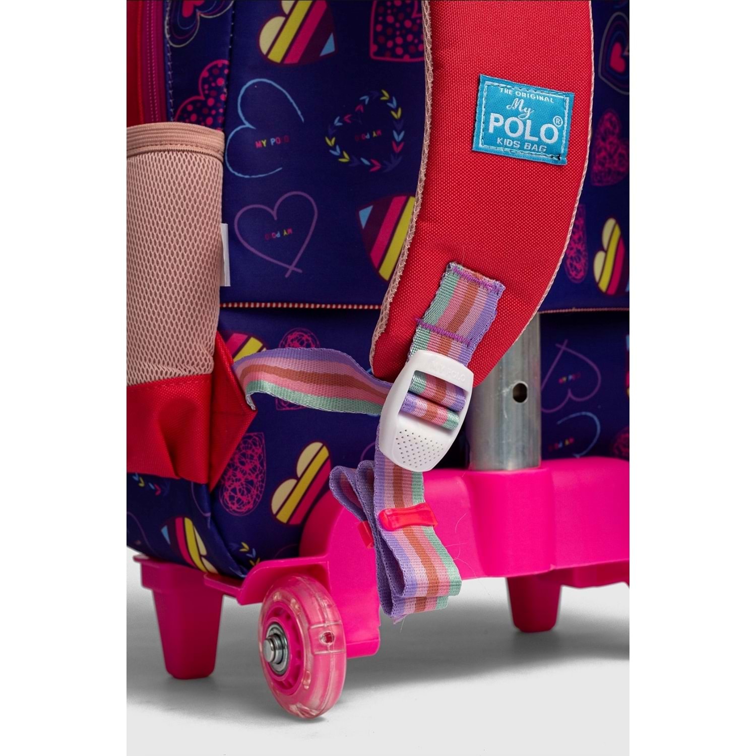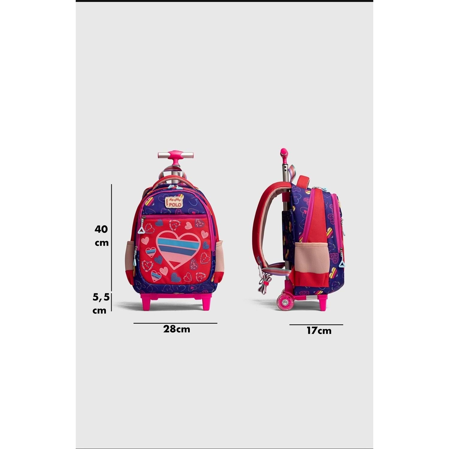 My Polo İthal Aksesuarlı İlkokul Sırt Çantası ve Çekçekli Modelimiz Şık tasarımı ve kullanım rahatlığı ile göz dolduran bir modelimizdir. Ön yüzündeki detaylar ile çantamız çocuğunuzun okul hayatında severek kullanacağı ilkokul çantası olarak tamamlayıcı bir parça olacaktır.ithal kumaştan üretilmiş olup yumuşak bir dokuya sahip çantamızı yanınızdan ayırmak istemeyeceksiniz. DETAYLAR : Materyal :İthal Kumaş. Dış Detaylar : İki adet fermuarlı ana giriş bölümü mevcuttur. Her iki yanında matara yada suluk koyabileceği lastikli cepleri mevcuttur. İç Detaylar : İç kısmında kullanılan astar yapısı sayesinde dökülme yada soyulma gibi problemle karşılaşmıyacaksınız.